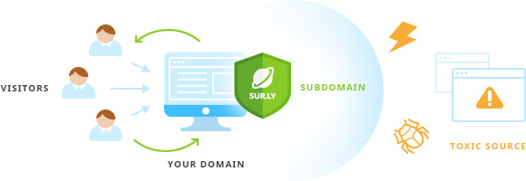 Sur.ly’s best practice includes usage of a subdomain: it provides a safety buffer between your website and any external domains that are not whitelisted as your project’s link building partners.