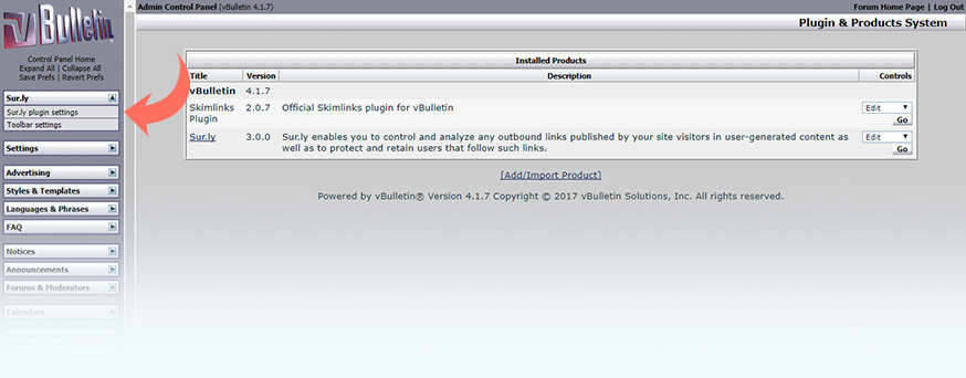 Go to Plugins & Products → Manage Products. Click Import Product. In the Import Product dialog, enter the path to the XML file: ./includes/xml/product-surly.xml and click Import